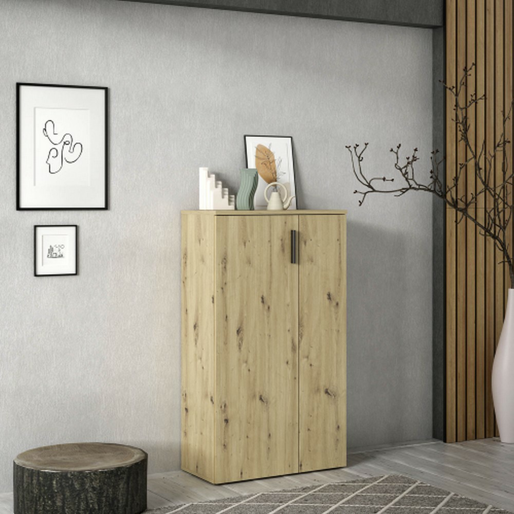 Mit zwei Türen bietet der Schuhschrank praktischen Stauraum für Schuhe, während er gleichzeitig Platz spart und das Zimmer aufgeräumt wirken lässt.