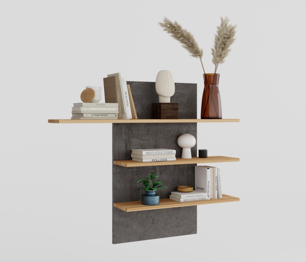 Das Broderick Wandregal mit 3 Regalböden verbindet modernes Design mit funktionaler Flexibilität und ist die ideale Ergänzung für Wohn-, Ess- oder Arbeitsbereiche.
