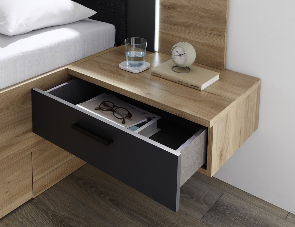 Im Lieferumfang sind zudem zwei stilvolle Nachtkommoden enthalten – jede mit einem praktischen Schubkasten für die Aufbewahrung von persönlichen Gegenständen. Bitte beachten Sie, dass die Bettanlage ohne Matratzen und Lattenrahmen geliefert wird, sodass Sie diese nach Ihren individuellen Vorlieben auswählen können.