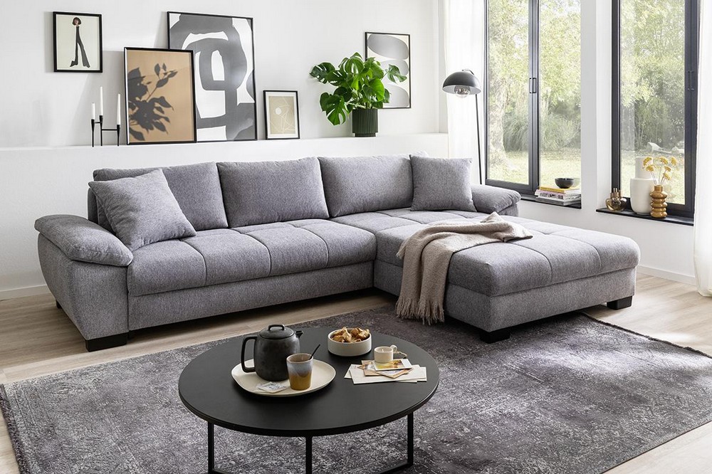 Die Cancun Polsterecke vereint moderne Eleganz mit praktischen Funktionen. Mit einem großzügigen Stellmaß von ca. 323 x 88 x 211 cm (B/H/T) bietet sie viel Platz für Entspannung – ob allein, mit der Familie oder Gästen.