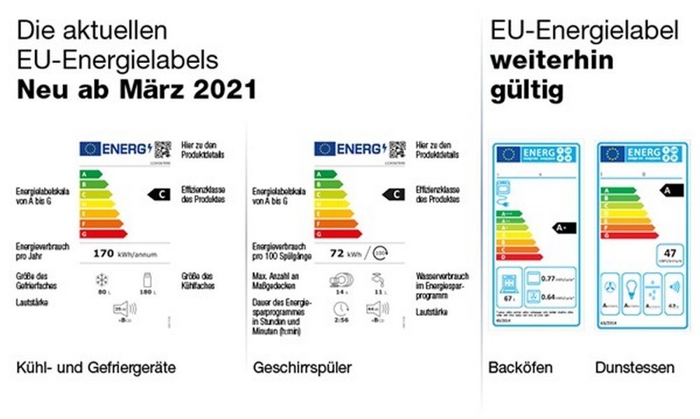 Jeweils auf einer Energieeffizienzklassen-Skala mit Spektrum 1) von A+++ bis D • 2) von A bis G