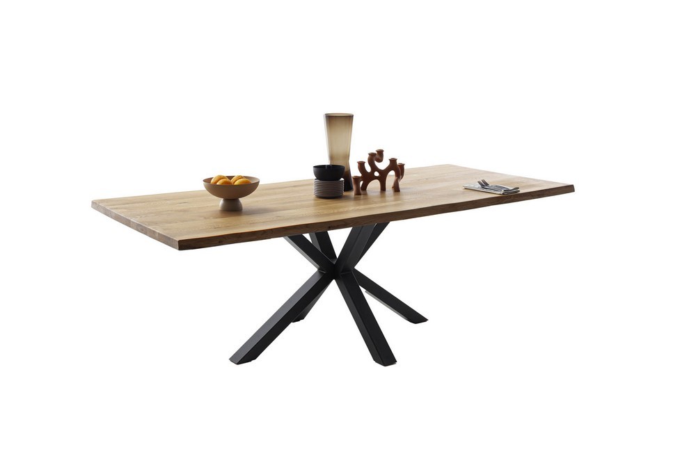 Ein echter Hingucker ist das moderne Spider-Gestell aus schwarzem Metall – stabil, stylisch und absolut im Trend. Die Kombination aus natürlicher Holzstruktur und markantem Untergestell verleiht deinem Raum Charakter und Eleganz zugleich.