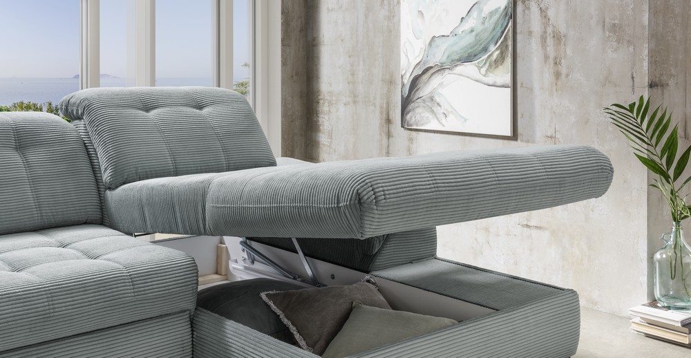 - Recamiere: Inklusive praktischem Bettkasten für zusätzlichen Stauraum und Kopfteilfunktion.