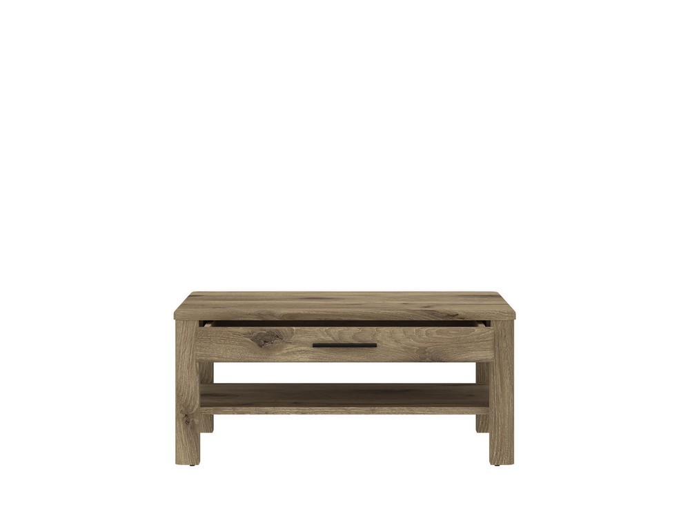 Ein integrierter Schubkasten bietet Platz für Fernbedienungen, Zeitschriften oder andere Alltagsutensilien – für ein stets aufgeräumtes Wohnzimmer.