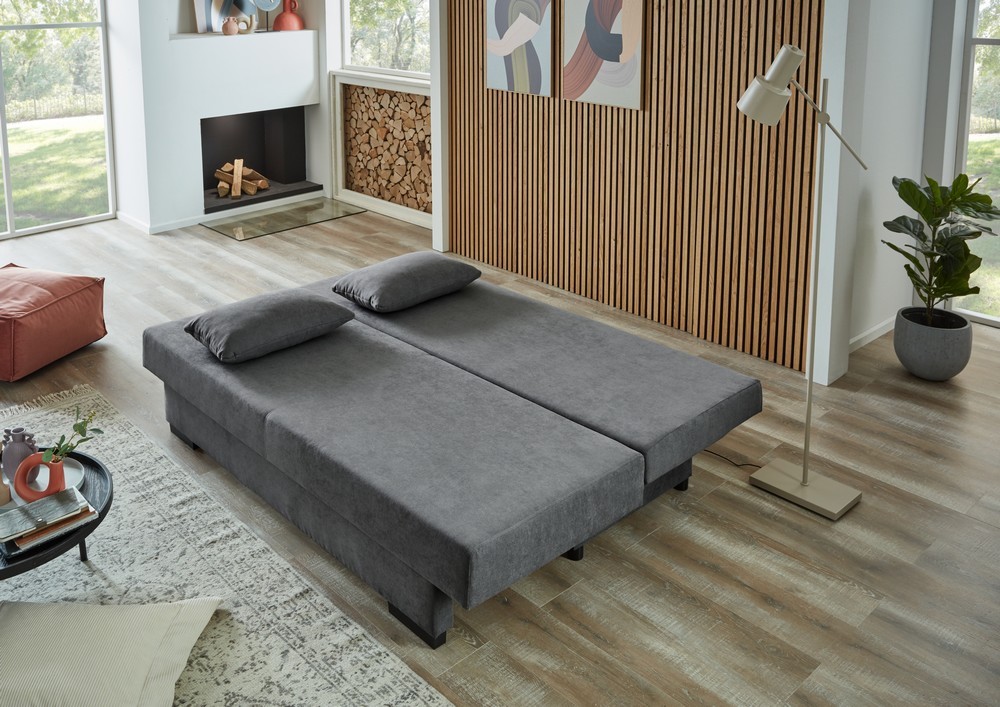 Das Schlafsofa Groningen vereint Funktionalität und modernes Design auf kompakter Fläche. Mit seinem schlichten grauen Bezug fügt es sich mühelos in verschiedenste Wohnstile ein – ideal für Wohnzimmer, Gästezimmer oder kleine Apartments.
