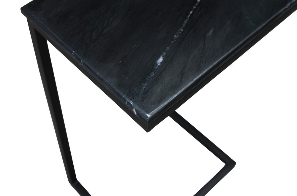 Der Beistelltisch Iron kombiniert edlen schwarzen Marmor mit einem stabilen Metallgestell in Schwarz und sorgt so für einen stilvollen Industrial-Look. Die elegante Marmorplatte verleiht dem Tisch eine luxuriöse Note, während das minimalistische Gestell für Stabilität und einen modernen, zeitlosen Kontrast sorgt.