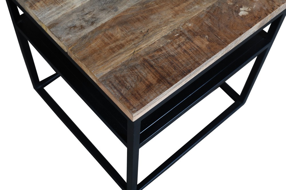Der Couchtisch Iron vereint modernes Industrial-Design mit natürlicher Eleganz. Die geölte Eichenholzplatte verleiht dem Tisch eine warme und edle Ausstrahlung, während das schwarze Metallgestell für Stabilität und einen markanten Kontrast sorgt. Eine zusätzliche schwarze Ablageebene bietet praktischen Stauraum für Zeitschriften, Bücher oder Deko-Elemente.