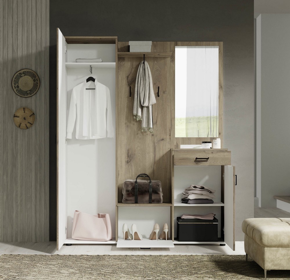 Diese durchdachte Kombination bietet optimalen Stauraum für einen aufgeräumten Eingangsbereich.