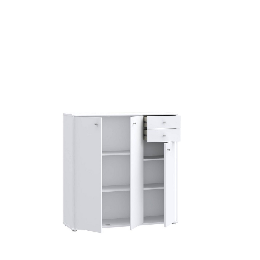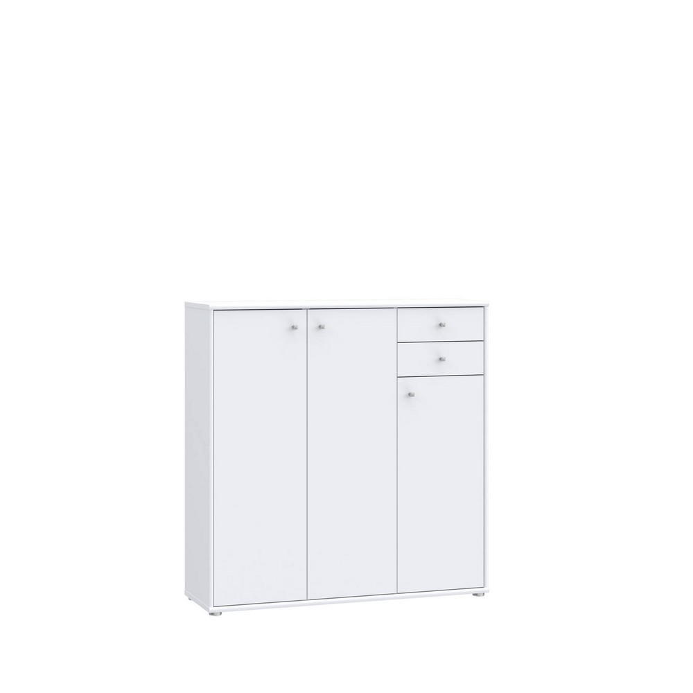 Die Kommode June 2 in klassischem Weiß verbindet zeitlose Eleganz mit praktischer Funktionalität. Ihr schlichtes Design passt sich harmonisch jedem Wohnstil an und sorgt für eine freundliche, aufgeräumte Atmosphäre. Mit drei Türen und zwei Schubkästen bietet sie viel Stauraum für deine persönlichen Gegenstände und hilft dir, Ordnung in Wohn-, Schlaf- oder Flurbereich zu halten. Dank der großzügigen Maße von ca. 109 x 111 x 35 cm (B/H/T) ist sie vielseitig einsetzbar und eine stilvolle Ergänzung für dein Zuhause.