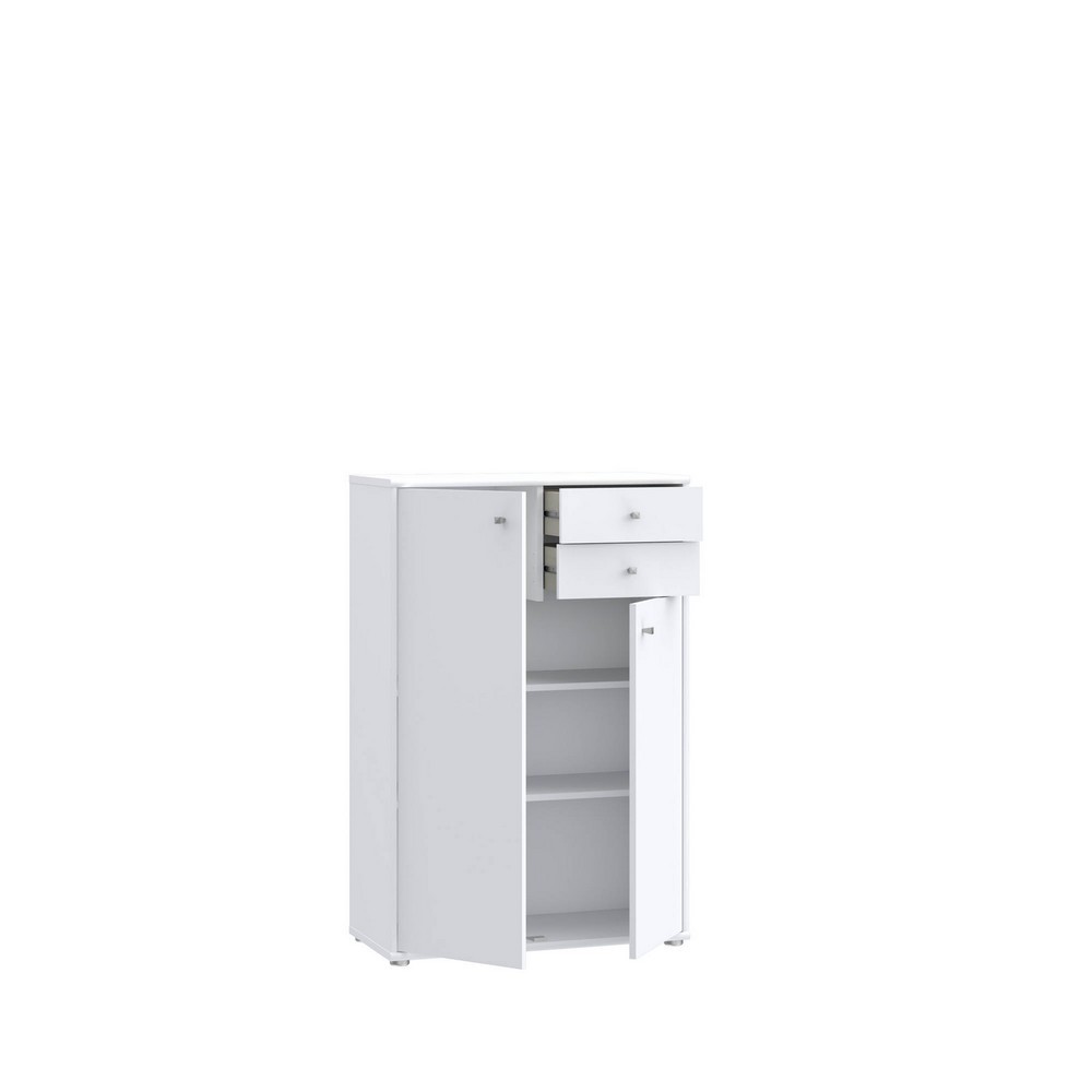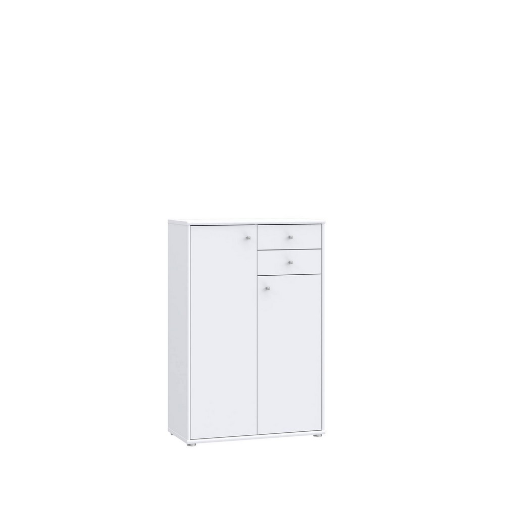 Die Kommode June 2 in klassischem Weiß überzeugt mit ihrem zeitlosen Design und praktischen Stauraum. Die schlichte Optik passt sich harmonisch jeder Einrichtung an und verleiht deinem Zuhause eine helle, freundliche Atmosphäre. Mit zwei Türen und zwei Schubkästen bietet sie viel Platz für deine persönlichen Gegenstände und sorgt für Ordnung in Wohn-, Schlaf- oder Flurbereich. Dank der Maße von ca. 74 x 111 x 35 cm (B/H/T) ist sie kompakt und dennoch geräumig – ideal für vielseitige Einsatzmöglichkeiten.