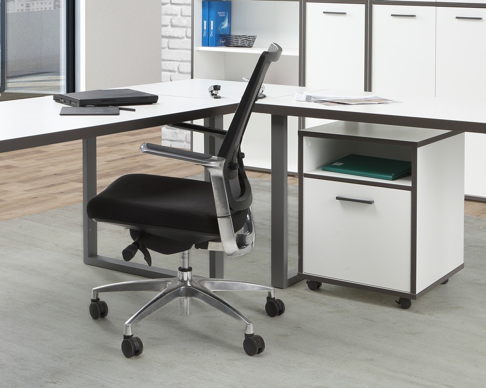 Ob als Verbindung zweier Schreibtische oder zur Ecklösung – mit dieser Verkettungsplatte schaffen Sie mehr Platz und Struktur am Arbeitsplatz.