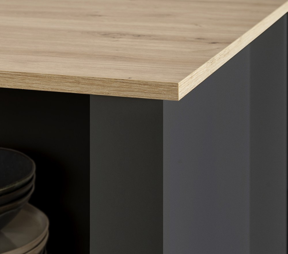 Mit der stilvollen Kücheninsel Senigallia wird deine Küche zum Mittelpunkt! Die kompakten Maße von ca. 124 x 90 x 75 cm (B/H/T) machen sie vielseitig einsetzbar, während die edle Kombination aus anthrazitfarbener Front und Korpus für einen modernen Look sorgt. Die Arbeitsplatte im Artisan-Design (16 mm) verleiht der Insel eine warme, natürliche Note. Mit einer bequemen Arbeitshöhe von 90 cm bietet sie dir optimalen Komfort beim Kochen und Vorbereiten. Perfekt für mehr Stauraum und Stil in deiner Küche!