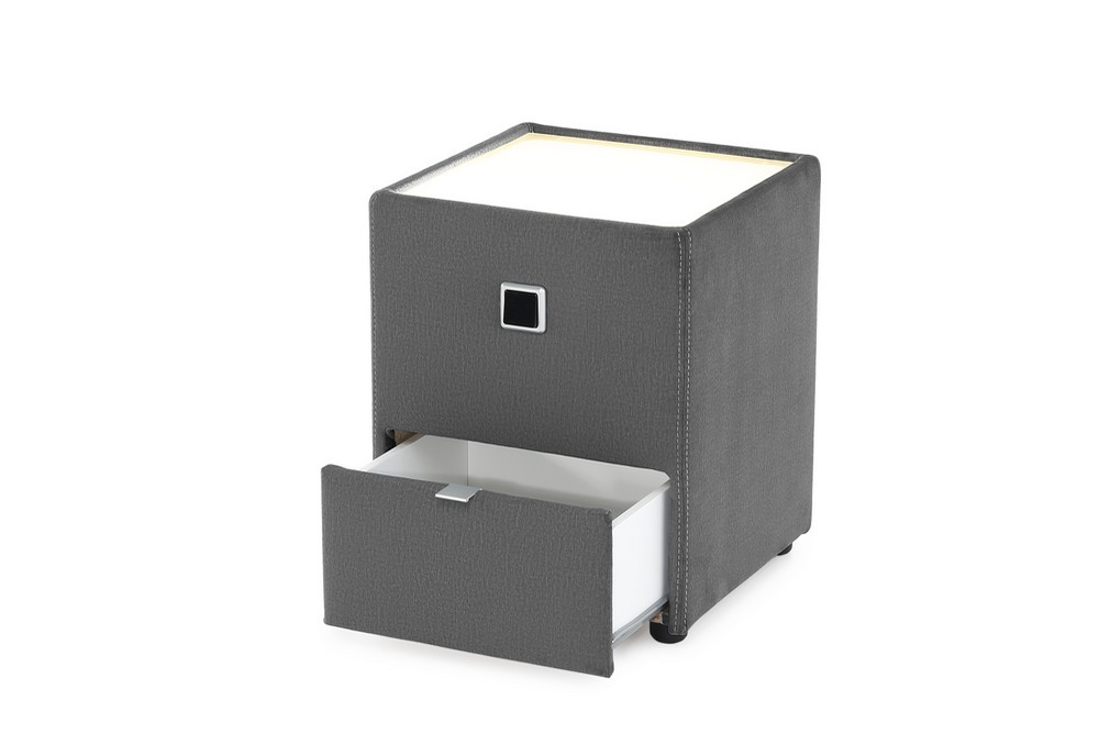 Die Lantos Nachtkonsole in edlem Grau vereint modernes Design mit praktischer Funktionalität und stimmungsvoller Beleuchtung. Mit ihren kompakten Maßen von ca. 43 x 53 x 43 cm (B/H/T) passt sie ideal neben jedes Bett und bietet mit einem Schubkasten genügend Stauraum für Bücher, Brille oder andere persönliche Dinge.