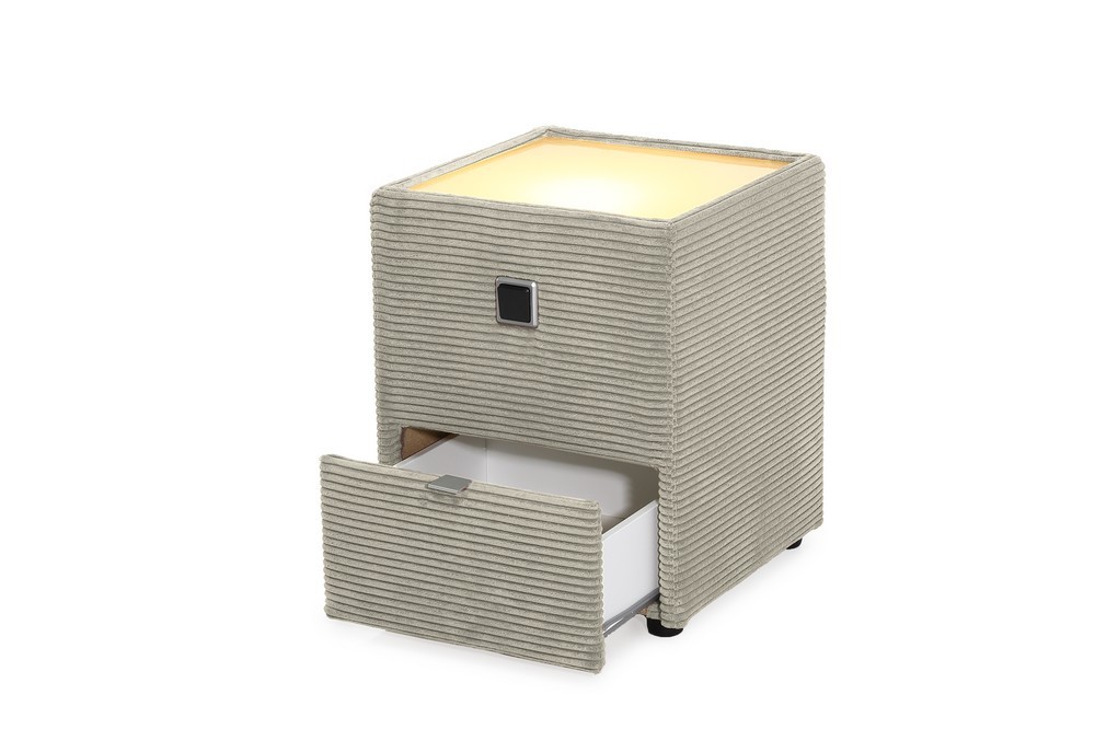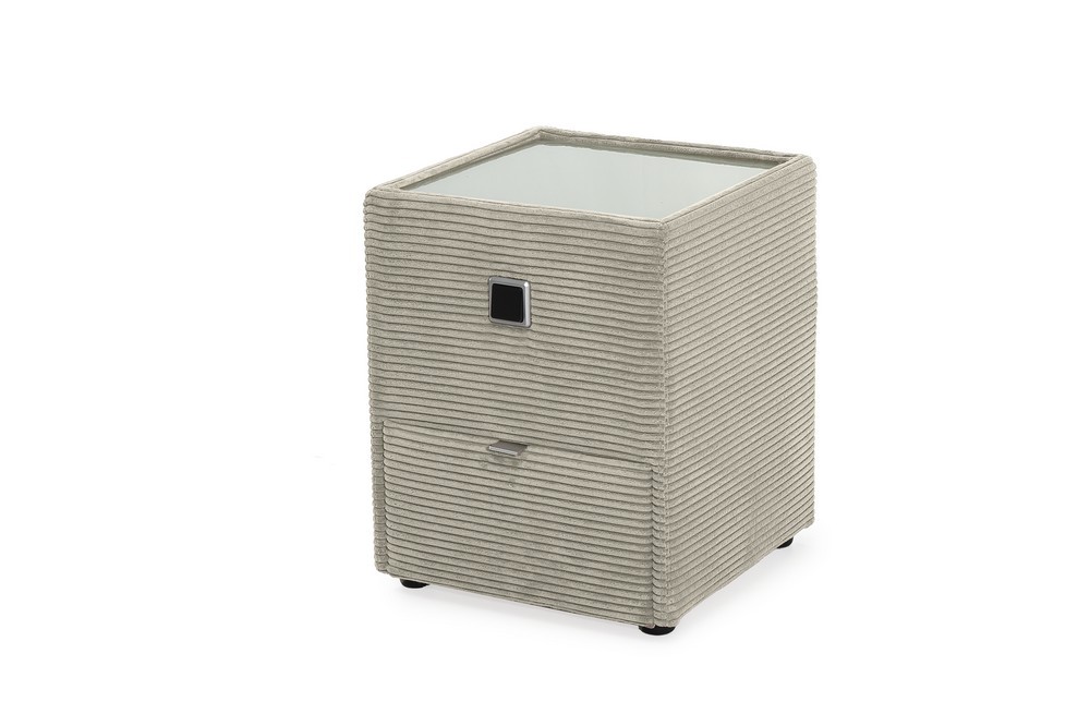 Die Lantos Nachtkonsole in edlem Beige Cord überzeugt mit einer modernen Stoffoptik und funktionalem Design. Mit ihren kompakten Maßen von ca. 43 x 53 x 43 cm (B/H/T) ist sie die perfekte Ergänzung für stilvolle Schlafzimmer. Der weiche Cordbezug in Beige verleiht der Konsole eine wohnliche, textile Note und macht sie zu einem besonderen Blickfang.