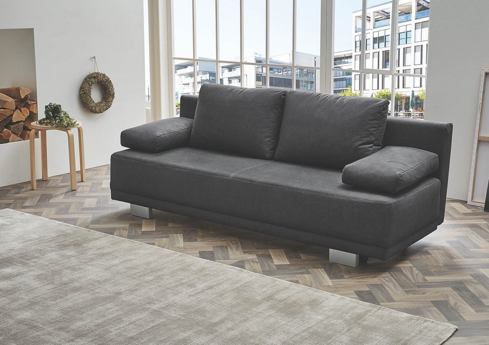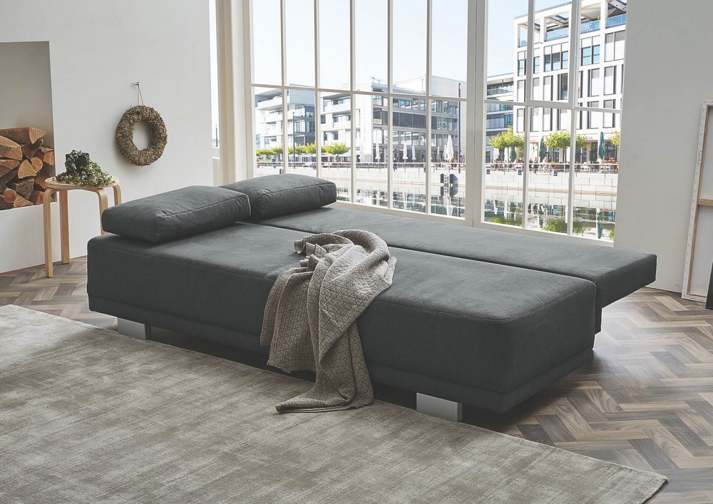 Dank der Gästebettfunktion verwandelt sich das Sofa mühelos in eine Liegefläche von ca. 125 x 196 cm, sodass Gäste bequem übernachten können. Die Polyätherschaumpolsterung sorgt für angenehmen Sitz- und Liegekomfort und bietet eine optimale Unterstützung.
