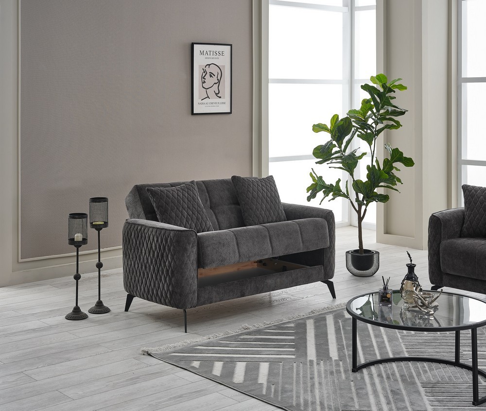 Mit dem Liva 2-Sitzer schaffst du dir eine gemütliche Sitzgelegenheit, die sowohl in kleinen Wohnzimmern als auch in großzügigen Räumen eine gute Figur macht. Der graue Bezug wirkt modern und dezent zugleich – perfekt, um sich harmonisch in dein Zuhause einzufügen.