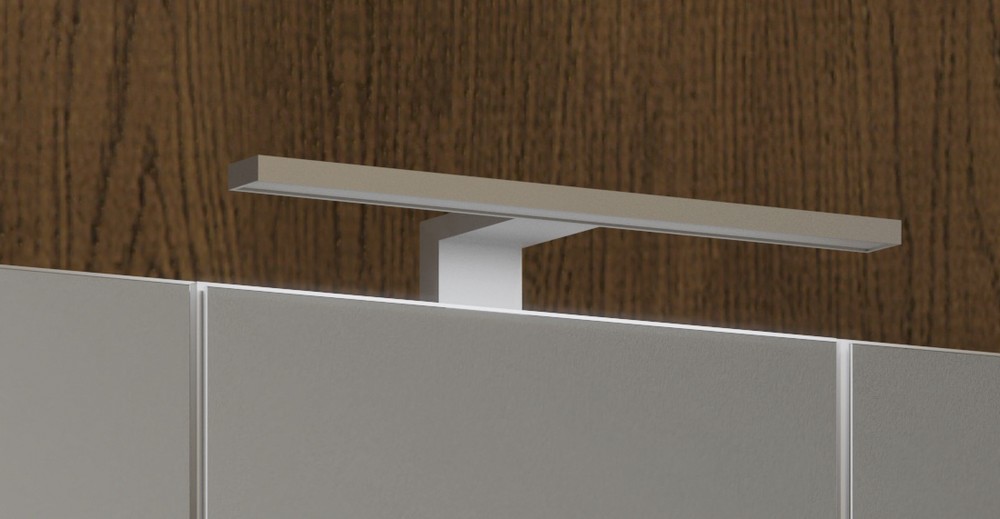 Die Lumos Badezimmerbeleuchtung ist die ideale Ergänzung für Ihren Spiegelschrank und sorgt für ein klares, funktionales Licht beim täglichen Pflegeritual. Mit Maßen von ca. 30 x 11,5 cm (B/H) ist sie kompakt und dennoch wirkungsvoll.