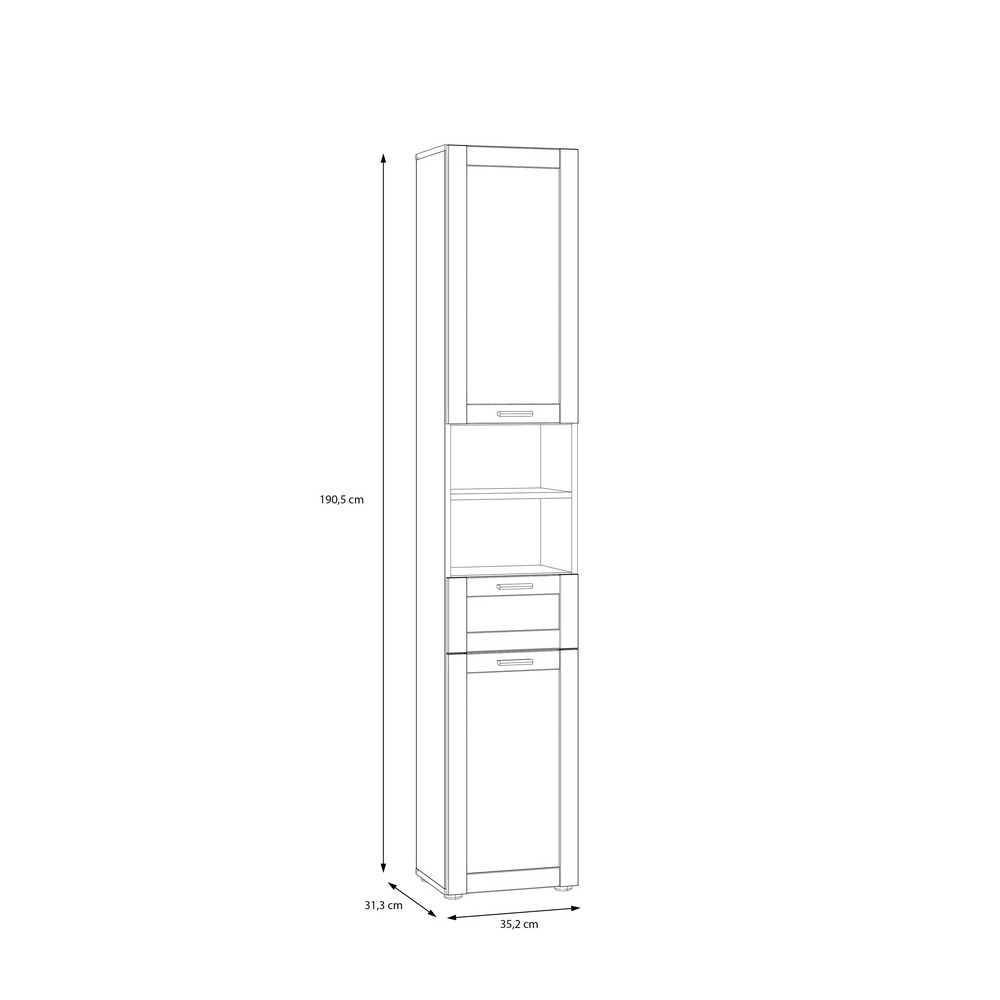 Der Lumos Badezimmer Hochschrank überzeugt durch seine schlanke Form, praktische Aufteilung und zeitloses Design. Mit Maßen von ca. 36 x 191 x 32 cm (B/H/T) eignet er sich ideal für kleinere Bäder oder als zusätzliche Stauraumlösung.