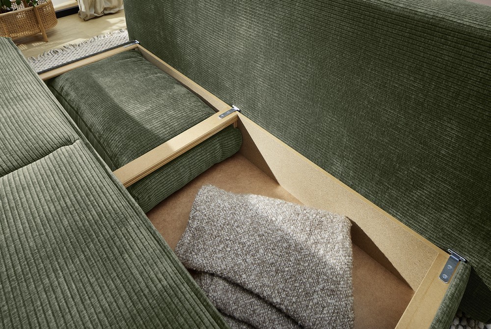Dank der hochwertigen Tonnentaschenfederkern-Polsterung auf Nosagfederung genießt du besten Sitz- und Liegekomfort – ganz gleich, ob du relaxen oder jede Nacht darauf schlafen möchtest. Die Liegefläche von ca. 160 x 200 cm macht das Sofa zu einem vollwertigen Bett für jeden Tag. Und der integrierte Bettkasten bietet dir zusätzlichen Stauraum für Kissen, Decken oder Bettwäsche.