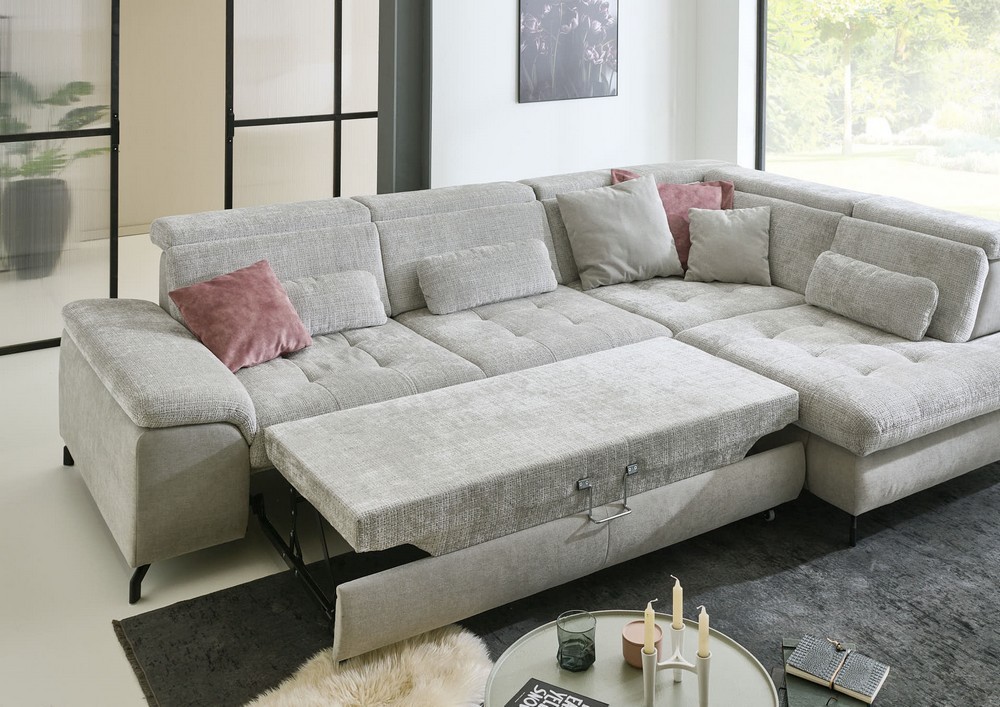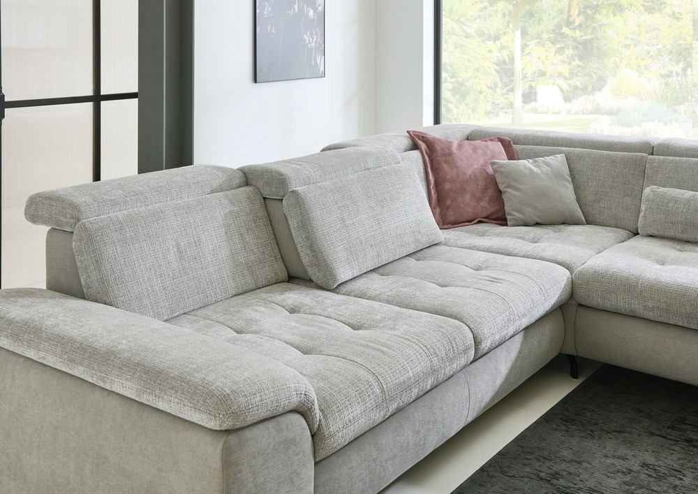 Der rechte Bereich besteht aus einem 3-Sitzer mit Querschläferfunktion, Sitztiefenverstellung, 2 verstellbaren Kopfteilen und einer Armlehne – perfekt für entspannte Stunden allein oder mit Gästen.