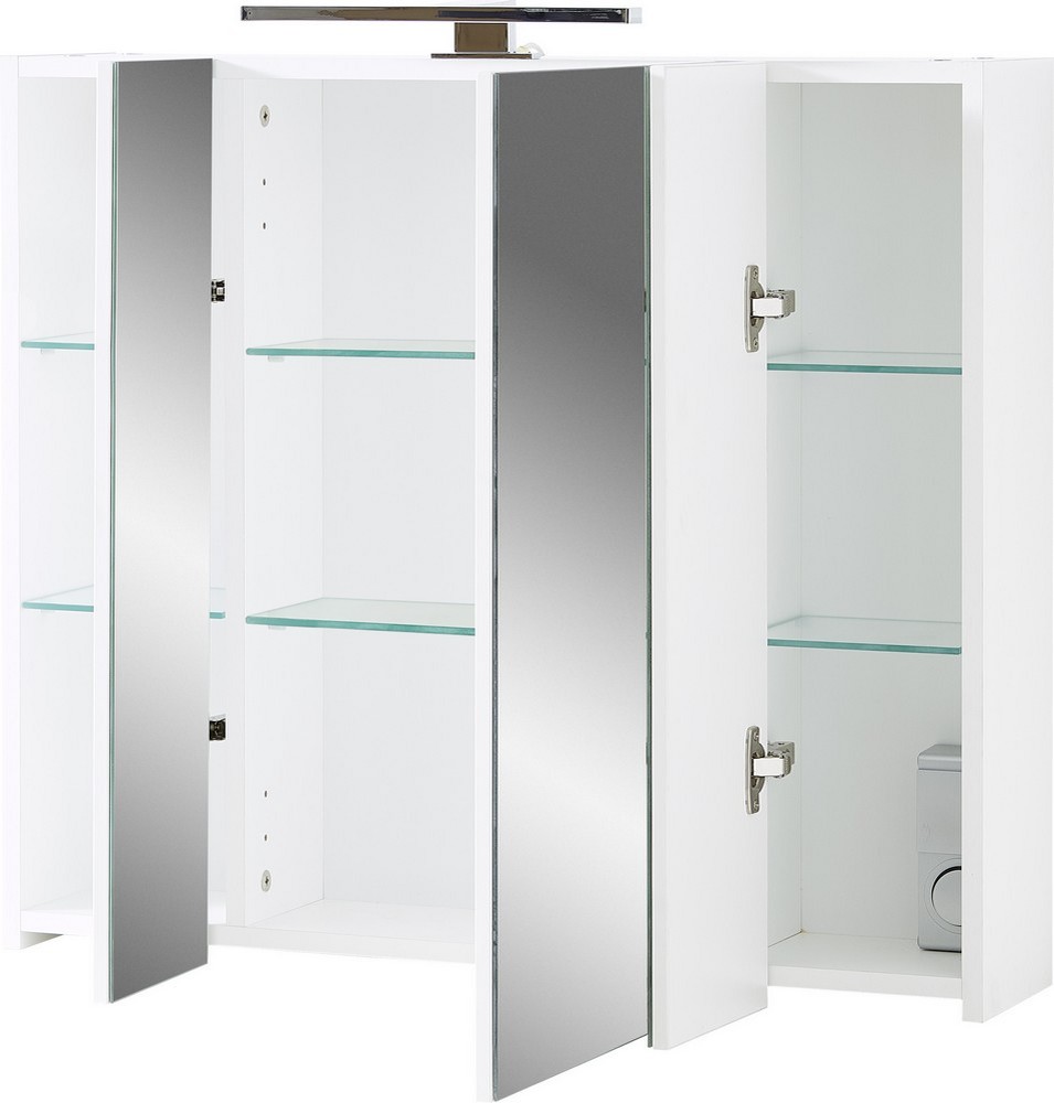 Der Spiegelschrank Marjory kombiniert modernes Design mit praktischer Funktionalität und ist die perfekte Ergänzung für dein Badezimmer. Mit seinen Maßen von ca. 76 x 71 x 23 cm (B/H/T) bietet er großzügigen Stauraum für Pflegeprodukte, Kosmetika und Alltagsutensilien, während er gleichzeitig als Spiegel dient.
