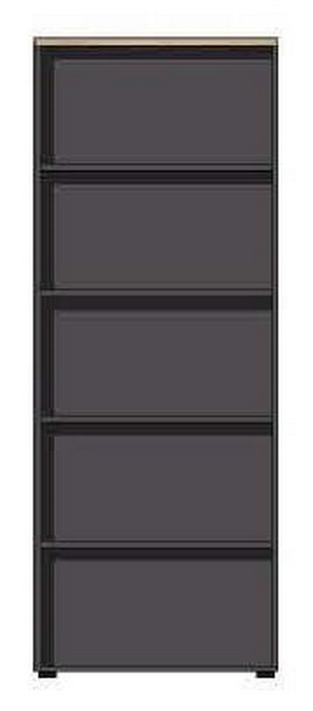 Der Korpus in elegantem Graphit verleiht dem Regal eine zeitgemäße Note, während die Front in Artisan Eiche Nachbildung einen warmen, natürlichen Akzent setzt. Die Materialkombination sorgt für einen stilvollen Kontrast und fügt sich harmonisch in moderne Arbeitsumgebungen ein.