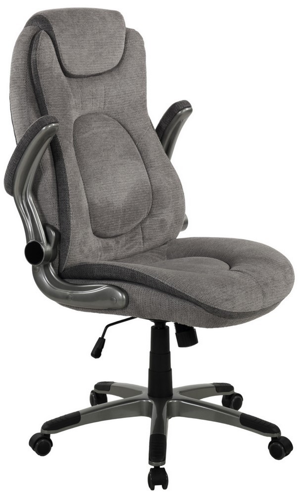 Besonders komfortabel sind die hochklappbaren Armlehnen in Grau mit Polsterung, die eine entspannte Armhaltung fördern und bei Bedarf platzsparend hochgeklappt werden können.