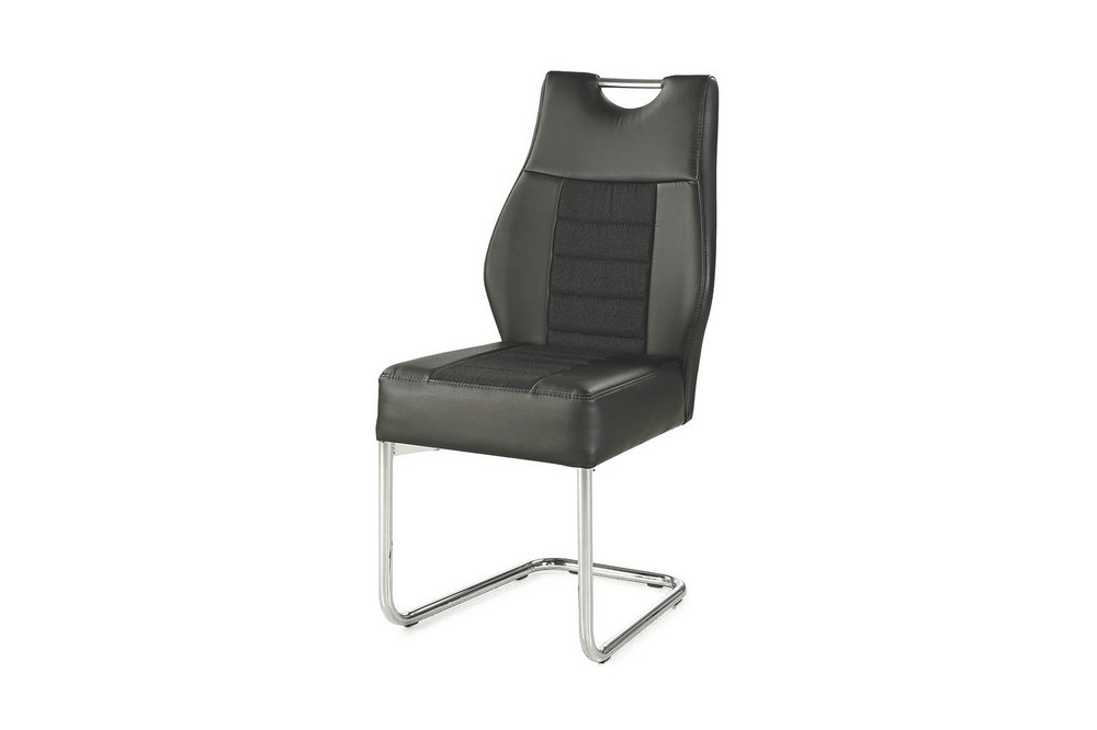 Der Nicky Stuhl überzeugt mit modernem Design, hoher Stabilität und exzellentem Sitzkomfort. Mit seinen Maßen von ca. 45 x 100 x 64 cm (B/H/T) fügt er sich perfekt in Esszimmer, Konferenzräume oder stilvolle Arbeitsbereiche ein. Die elegante schwarze Polsterung sorgt für einen zeitlosen Look, während das Gestell aus verchromtem Rundrohr einen edlen Akzent setzt und für Stabilität sorgt.