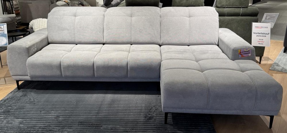 Mach es dir so richtig bequem auf der Nicolle Wohnlandschaft in stilvollem Grau. Mit einem Stellmaß von ca. 292x90/108x187 cm bietet sie dir großzügigen Platz zum Entspannen, Relaxen oder Serienmarathon – ganz nach deinem Rhythmus.