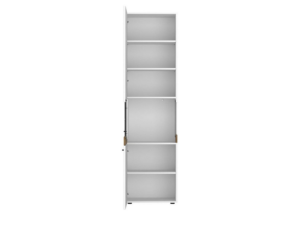 Mit zwei Türen bietet die Vitrine geschlossenen Stauraum für Geschirr, Gläser, Dekoration oder andere Alltagsgegenstände. Dank ihrer Maße von ca. 55 x 200 x 37 cm (B/H/T) ist sie schlank, aber dennoch geräumig und sorgt für eine aufgeräumte Atmosphäre.