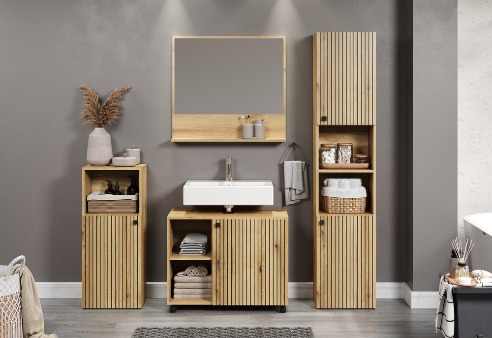 Der Standschrank PureBliss ist vielseitig einsetzbar – ob im Badezimmer, Flur oder Wohnbereich – und sorgt für Ordnung und Stil in jedem Raum.