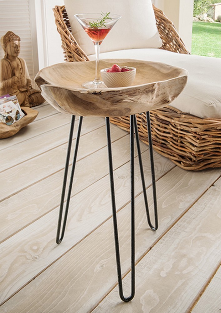 Der Beistelltisch/Schale Root aus massivem Teakholz besticht durch seine natürliche Optik und einzigartige Maserung. Durch die organische Form und die warme Holzfarbe wird jedes Stück zu einem Unikat, das sich perfekt in verschiedene Wohnstile einfügt.