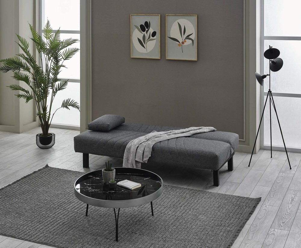 Mit dem Runa Schlafsofa bekommst du beides: eine komfortable Sitzgelegenheit für den Tag und eine praktische Schlafmöglichkeit für die Nacht. Der graue Bezug wirkt modern und dezent – perfekt, um sich harmonisch in dein Wohn- oder Gästezimmer einzufügen.