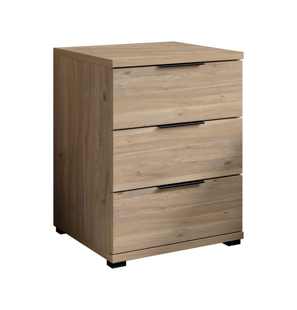 Die Nachtkommode Sandra 2 kombiniert modernes Design mit praktischer Funktionalität und verleiht jedem Schlafzimmer einen natürlichen, stilvollen Akzent.