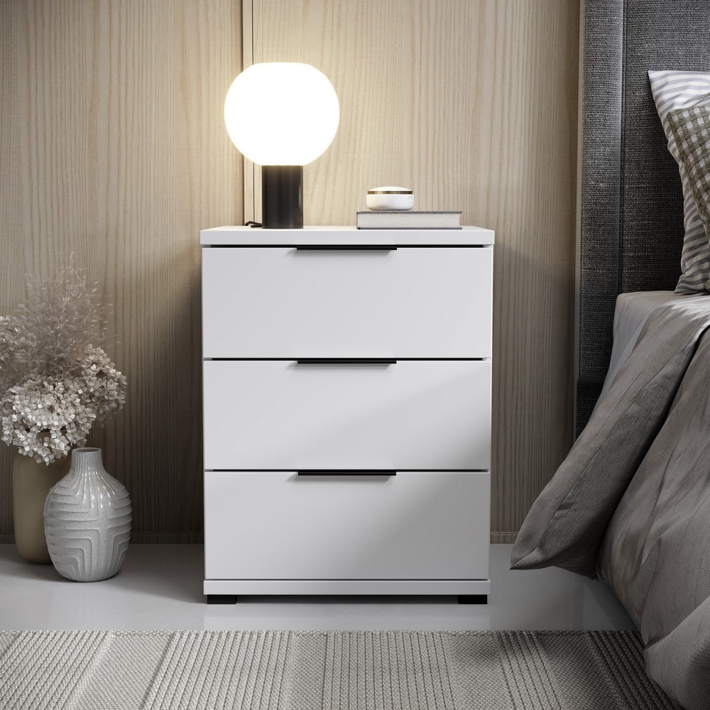 Die Nachtkommode Sandra 2 überzeugt durch ihr modernes Design, klare Linien und praktische Funktionalität – perfekt für jedes Schlafzimmer.