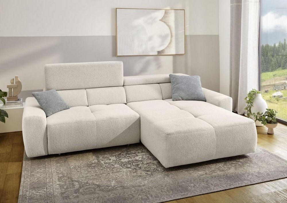 Die Ulises Polsterecke bietet großzügigen Komfort, moderne Technik und stilvolles Design in einem. Mit einer Gesamtgröße von ca. 298 x 110 x 213 cm B/H/T ist sie ideal für alle, die viel Platz und vielseitige Funktionen schätzen. Der graue Flachgewebe Bezug besteht aus 100 Prozent Polyester und überzeugt durch angenehme Haptik und zeitlose Optik.