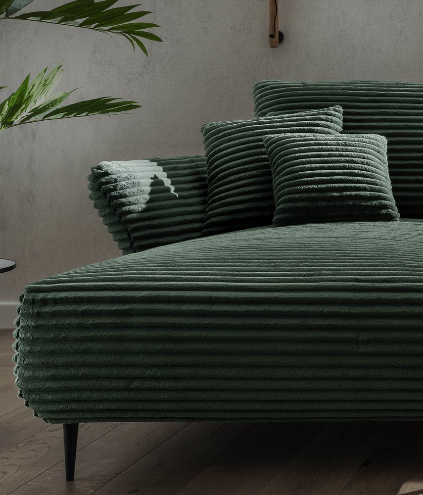 Die Polstergarnitur Verge in Moosgrün ist der perfekte Blickfang für Ihr Zuhause und sorgt gleichzeitig für höchsten Komfort. Mit den Maßen ca. 260-302x94x180 cm B/H/T bietet diese Garnitur sowohl großzügigen Platz zum Sitzen als auch zum Entspannen. Der 2-Sitzer mit Armlehnfunktion und die Recamiere mit ebenfalls verstellbarer Armlehne passen sich Ihren Bedürfnissen an und bieten flexible Nutzungsmöglichkeiten. Die Wellenunterfederung und der Komfortschaum garantieren einen hohen Sitzkomfort. Mit den mitgelieferten Zierkissen in den Größen 40x40 cm und 45x45 cm wird das elegante Design abgerundet. Die Füße aus Metall in Schwarz matt verleihen der Garnitur ein modernes Finish. Die Sitzhöhe beträgt ca. 48 cm. Die Polstergarnitur ist einmalig li/re montierbar und passt sich daher ideal Ihrem Raum an.